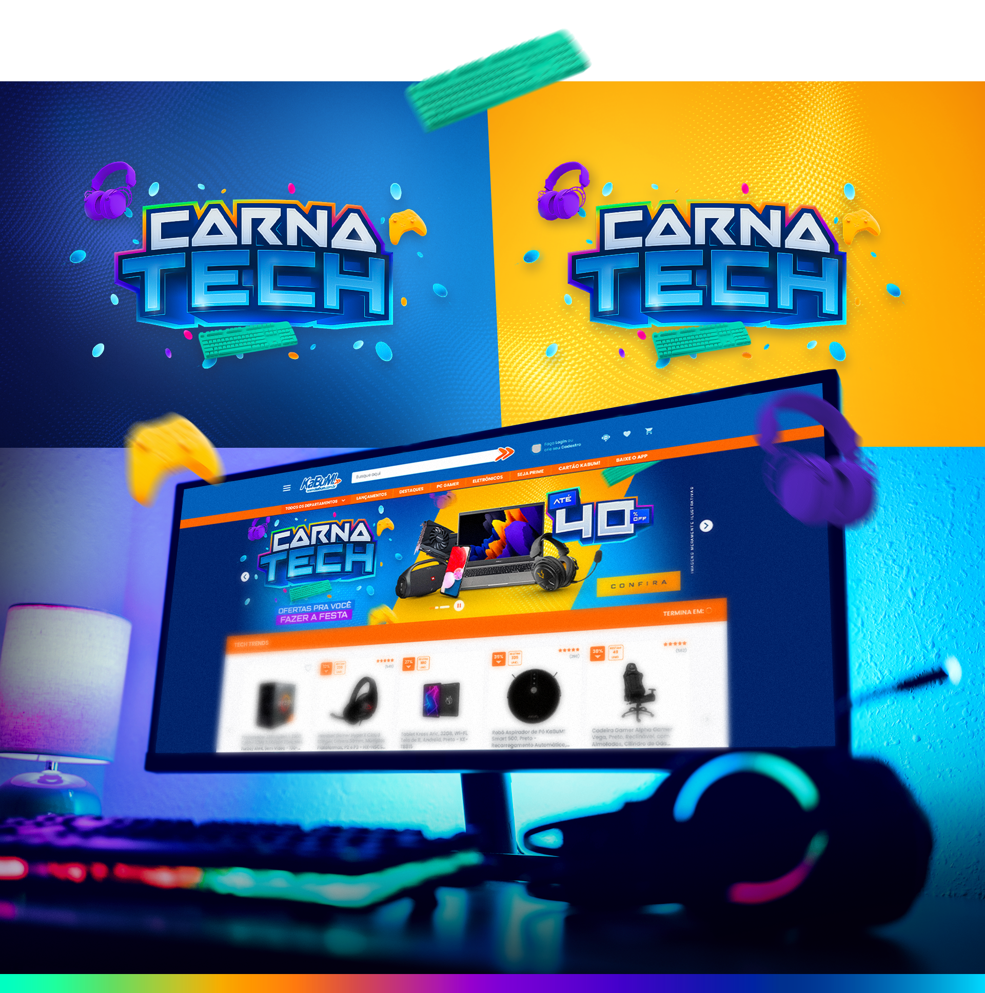 O Carna tech é uma campanha anual desenvolvida pelo KaBuM!, mostrando os melhores itens tech para serem adquiridos nessa época do ano.